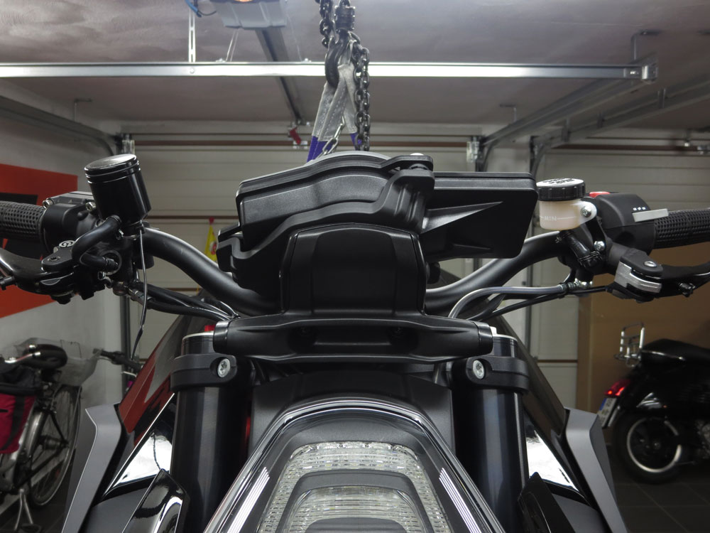 Der Halter ist ziemlich groß, das kommt daher weil KTM sichs einfach gemacht hat und das Cockpit einfach von nem anderen Moped genommen hat.