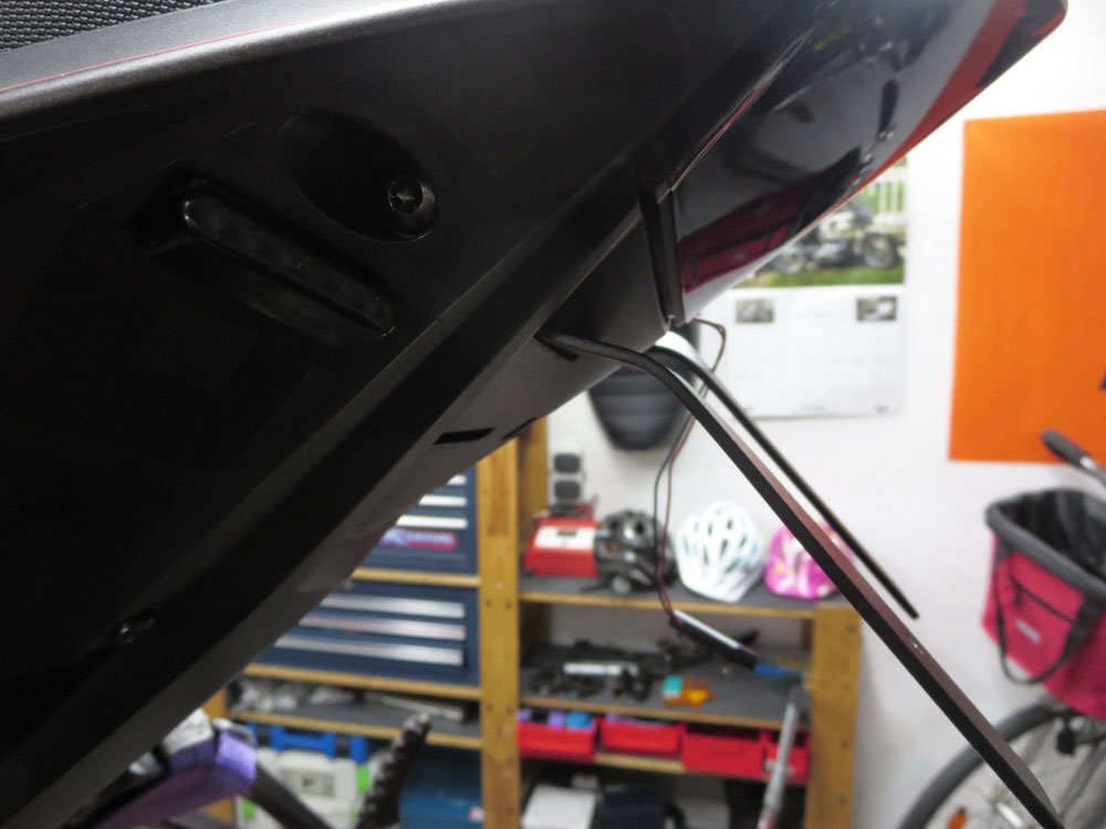 Kann man aber auch leicht selber nachbauen, das Kabel für den Schalter liegt von Werk auch schon im Heck (falls es das Montagekit nur im Komplettpaket mit der Anlage von KTM geben sollte). Das komplette Kit von KTM ist sehr teuer, die baugleiche Legos4 kriegt man schon für 165€.